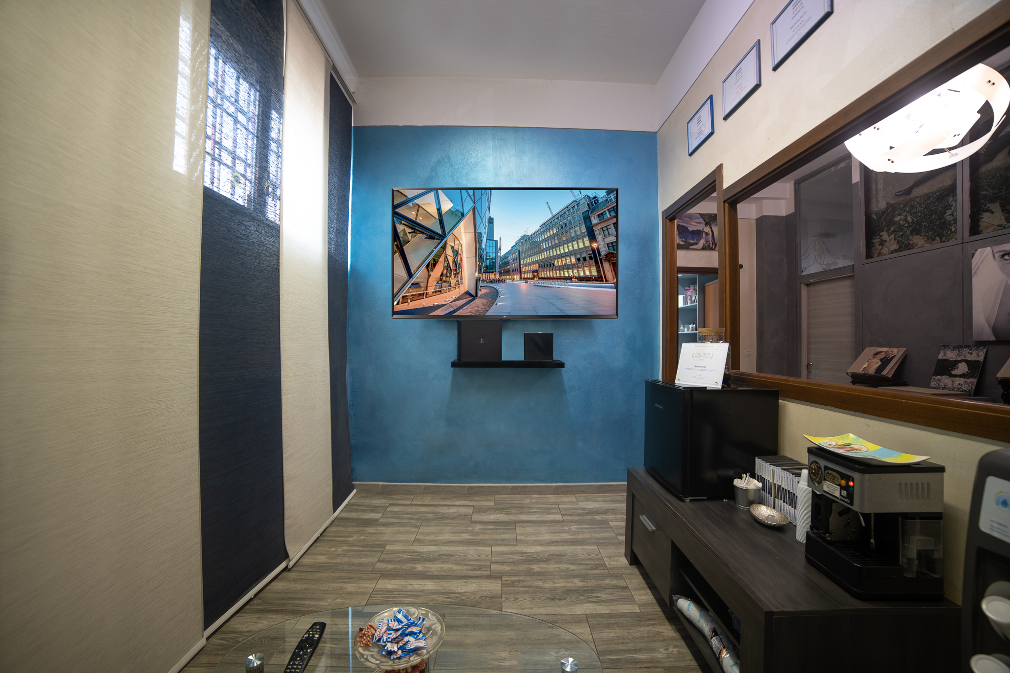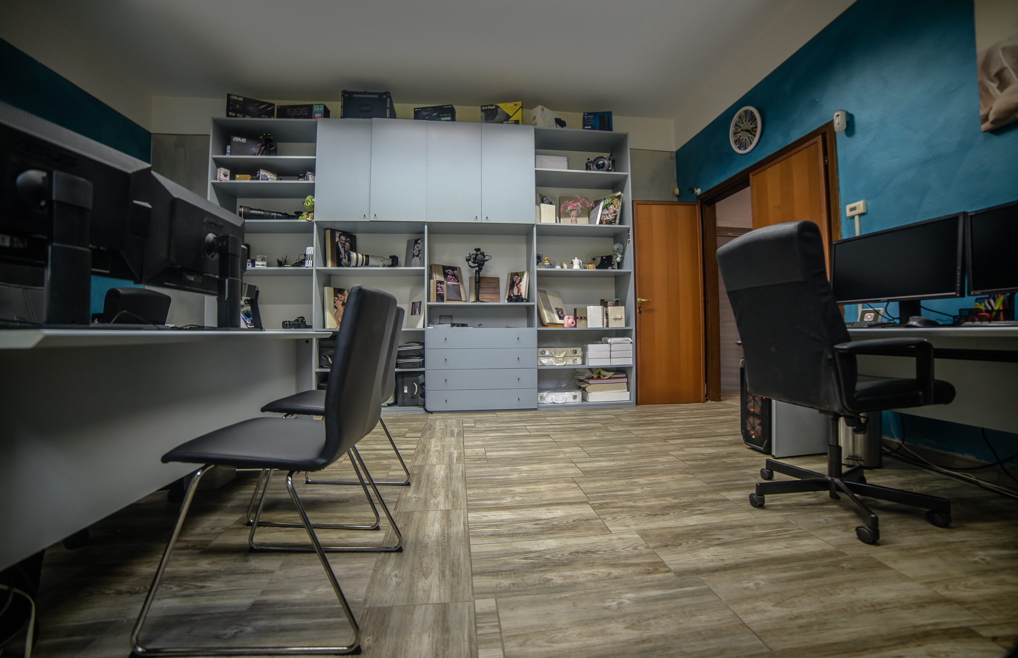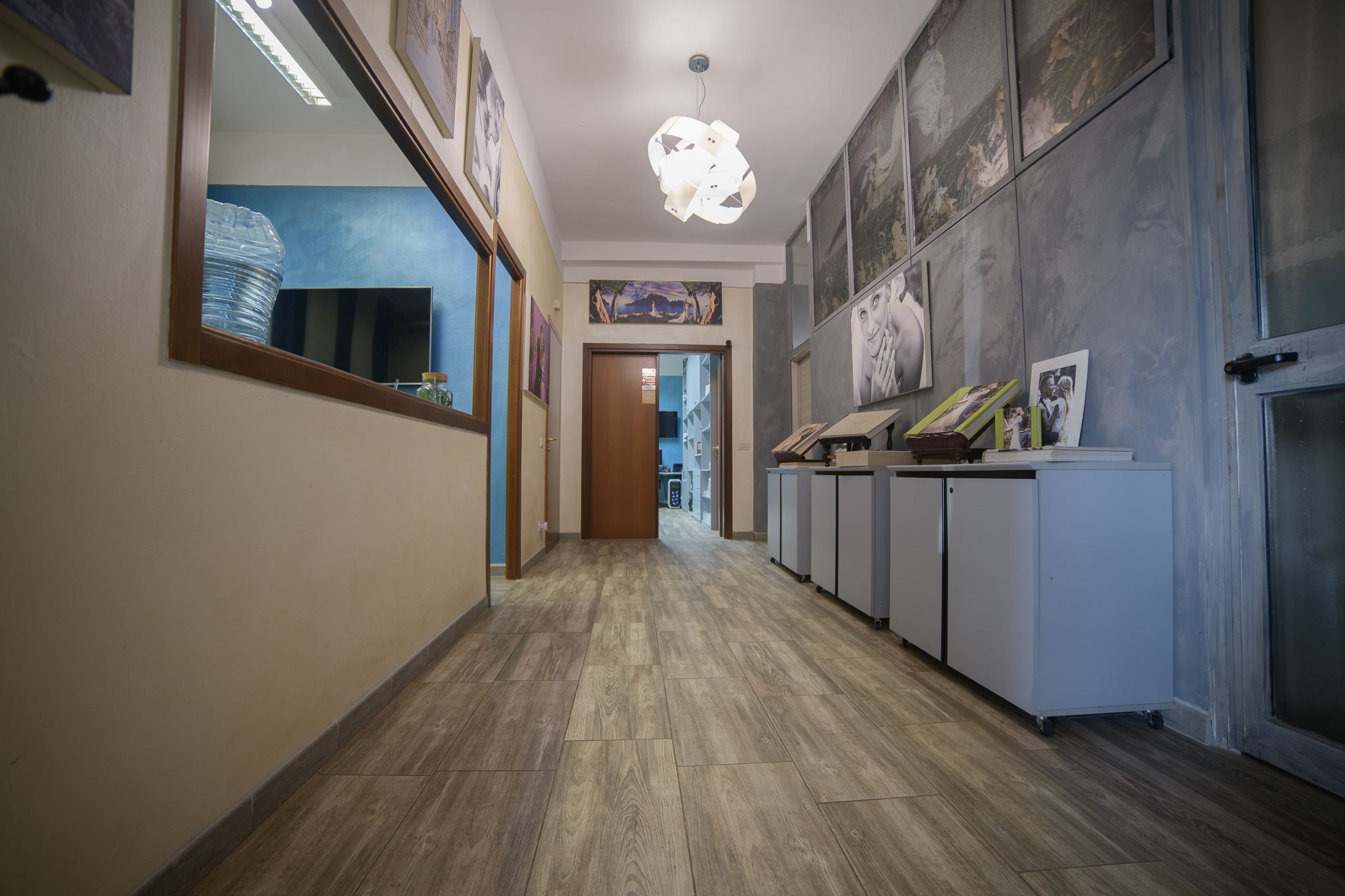 Nella sala Studio troviamo 3 postazioni differenti per selezione delle fotografie di Matrimonio, per la visione dei video prima del montaggio finale, un computer dedicato al ritocco delle fotografie e ancora un ulteriore showroom di album e attrezzature complementari per la massima scelta dei migliori servizi di Matrimonio.
