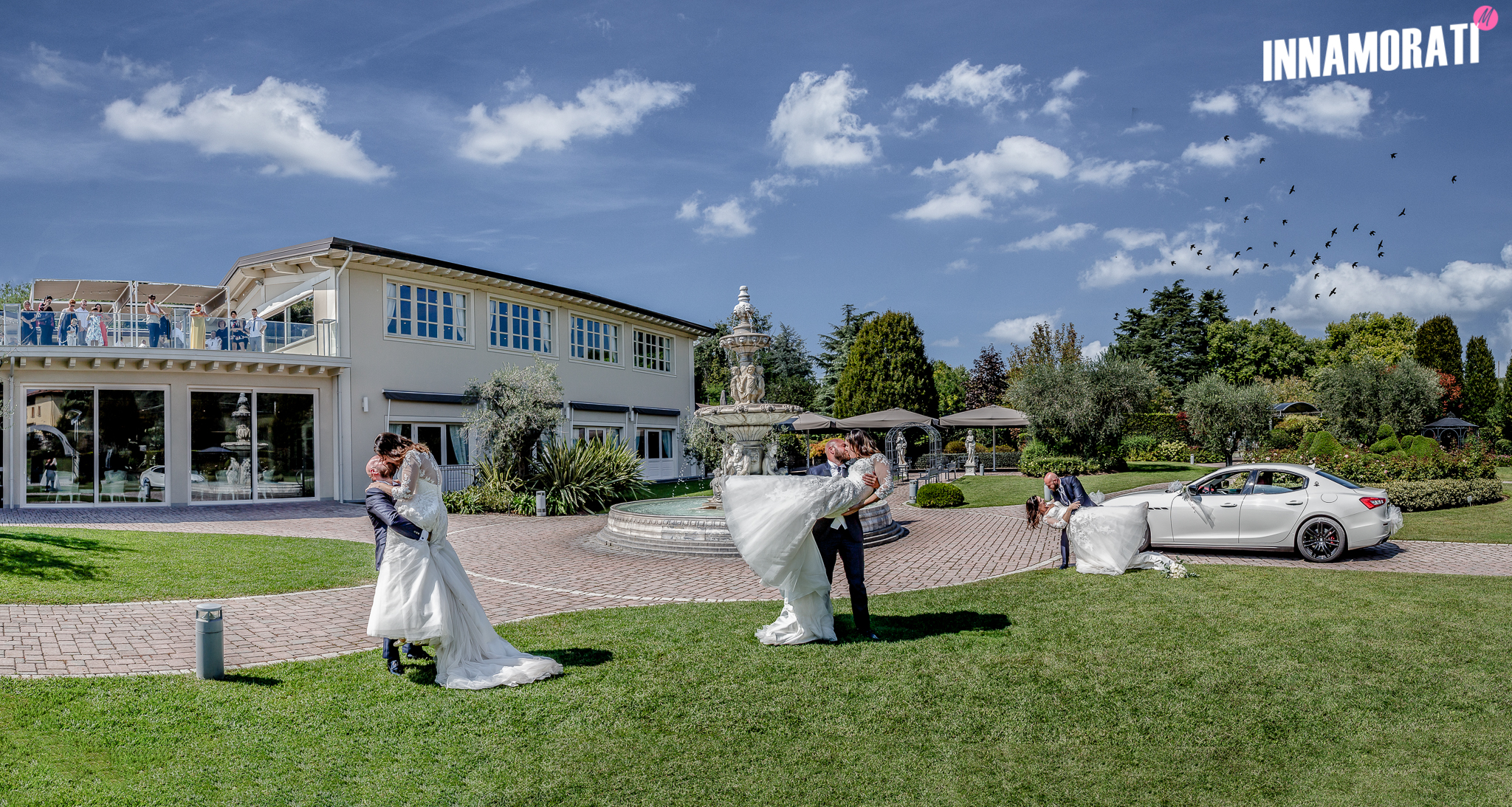 Location Pio Nono nel verde della Franciacorta raffinatezze servite tra colonne e soffitti decorati con: veranda ed un incantevole giardino, l'imponente fontana di marmo, il ponticello degli innamorati sullo sfondo, il colore verde della fitta piantumazione, intervallato dai tocchi delle vivaci tonalità dei fiori e dalle linee sinuose dei gazebi, una cornice di una magica location, dove potrete vivere il vostro giorno speciale.